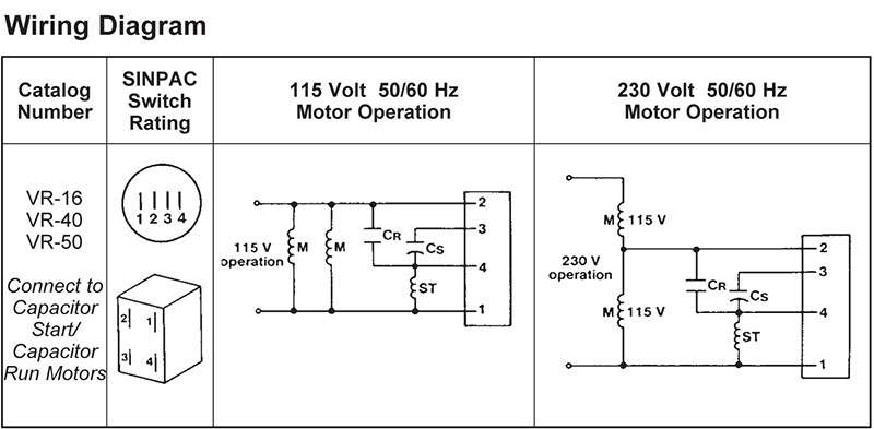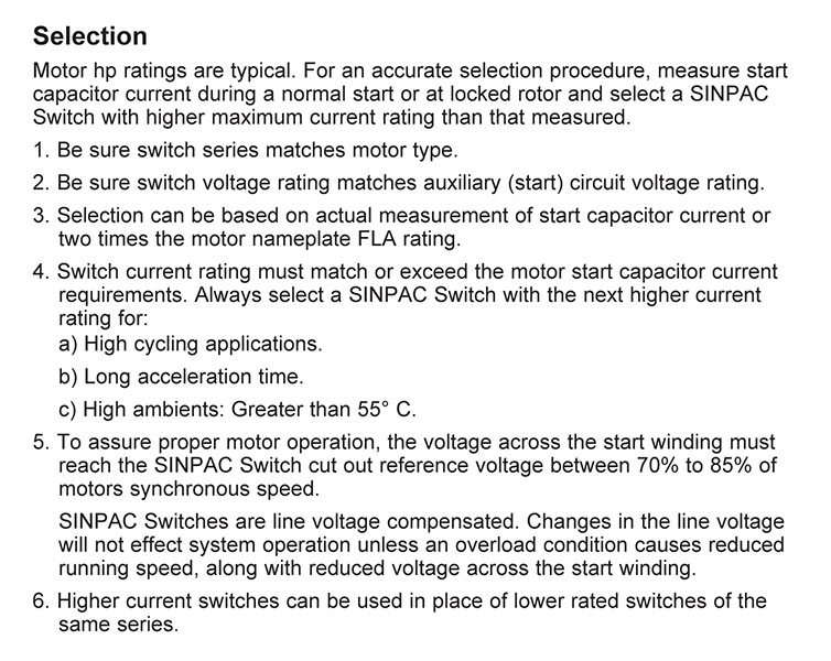 Capacitor start/capacitor run motors exhibit current transients and higher voltages across the start switch. These electrical stresses occur due to the switching of the two capacitors (start and run) that are connected in parallel during motor start and may have different voltages at time of restart. These stresses occur at restart with both mechanical and electronic start switches. The VR switch features circuitry designed to eliminate the effects of these conditions.