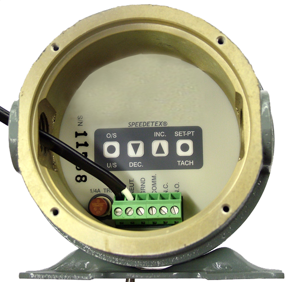 The TORQ Speedetex® Speed Switch is used in bulk material handling/processing systems to monitor speeds of belt conveyors, screw conveyors, bucket elevators, rotary feeder shafts, rotating drums and other types of rotating machinery to protect elevators, feeders and conveyors from speed related damage resulting from broken belts, overloads, or belt slippages.